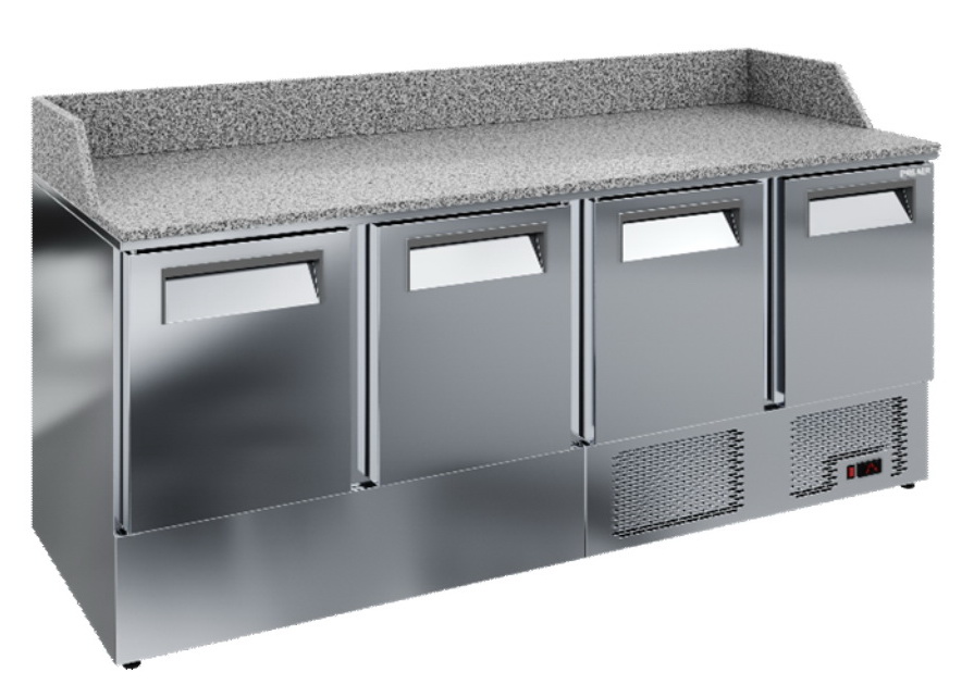 Холодильный стол Polair TMi4GNpizza-GCможет использоваться совместно с охлаждаемой настольной витриной для ингредиентов — специально для ее установки предусмотрены высокие борты с трех сторон, как следствие, место на столешнице под витриной останется свободным. Расширенный температурный режим -2/+10°C подходит для охлаждения деликатесных ингредиентов пиццы, требующих особых температурных условий хранения.