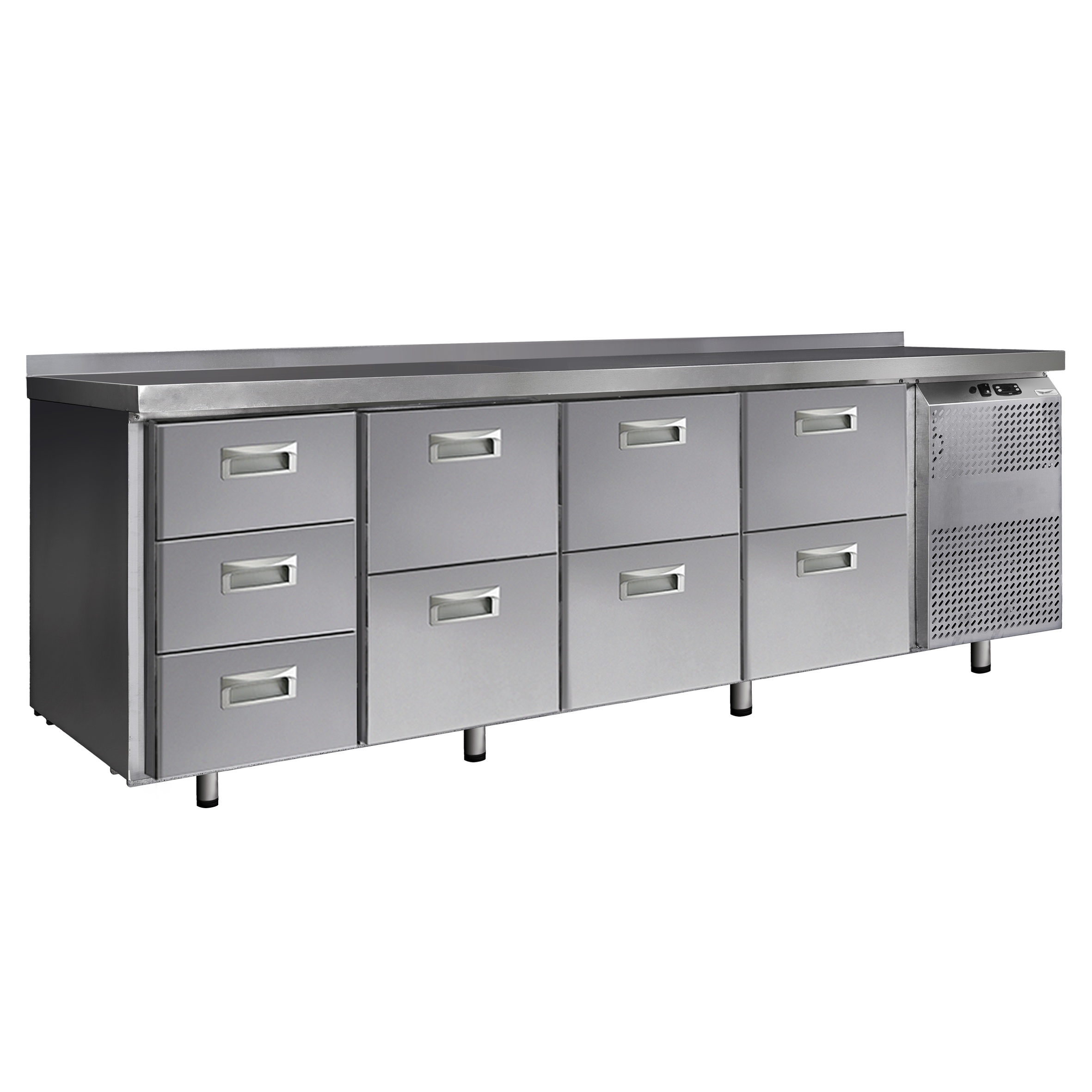 Холодильный стол Finist СХС-700-0/9 с четырьмя секциями изготовлен из высококачественной пищевой нержавеющей стали. Температурный режим: -2/+8С. Температурный режим регулируется с помощью электронного блока управления.