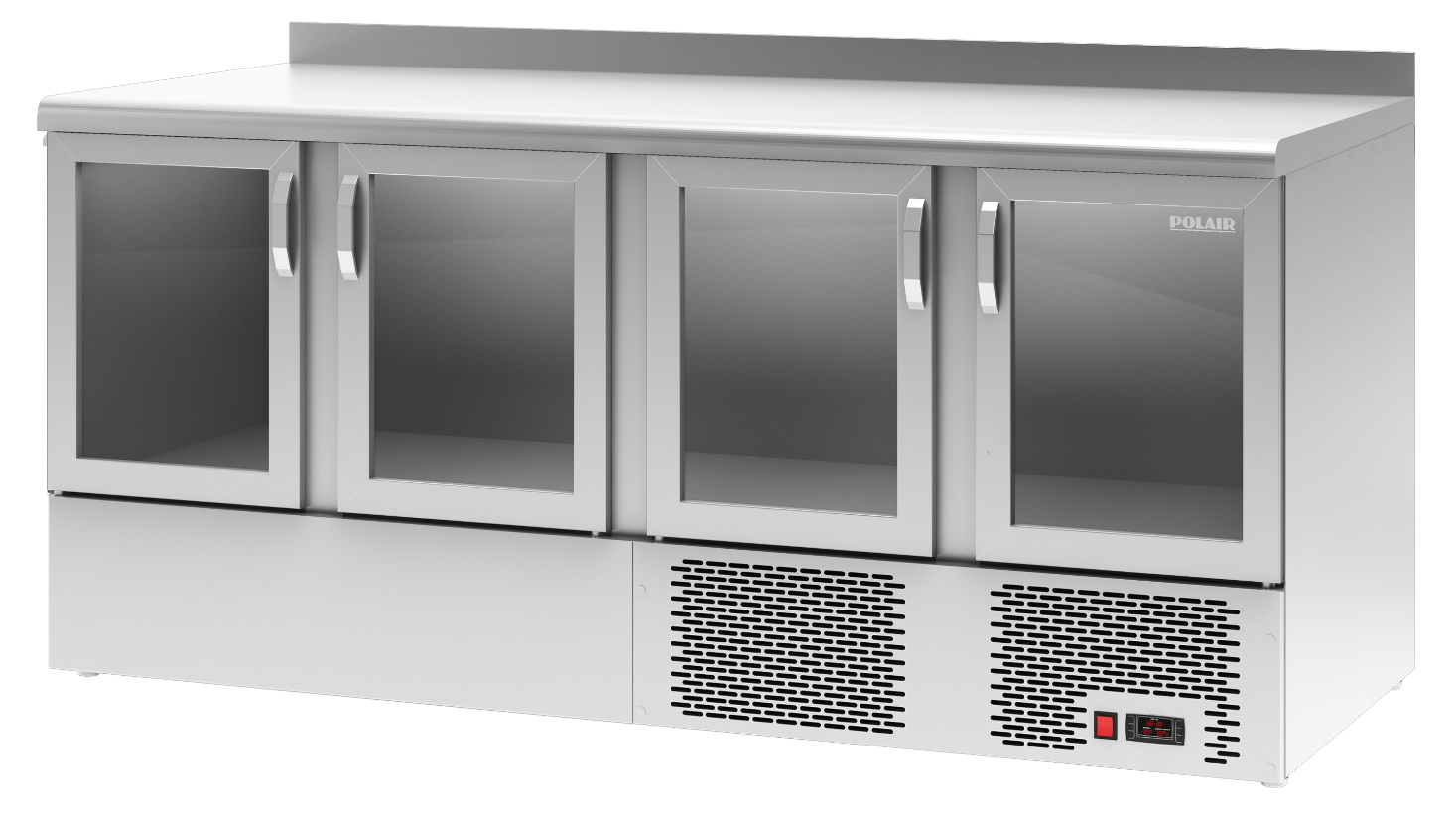 Комплектацияхолодильного стола Polair TDi4-Gвключает в себя 4 полки из оцинкованной крашеной провлолки, каждая выдерживает нагрузку до 30 кг. Нижнее расположение агрегатного отсека уменьшает габариты изделия, облегчая его встраивание в линию профессионального кухонного оборудования или в барную мебель. Теплоизоляция корпуса материалом ППУ и уплотнители дверок обеспечивают надежное сохранение холода внутри, а динамическая система — равномерное охлаждение всего объема.