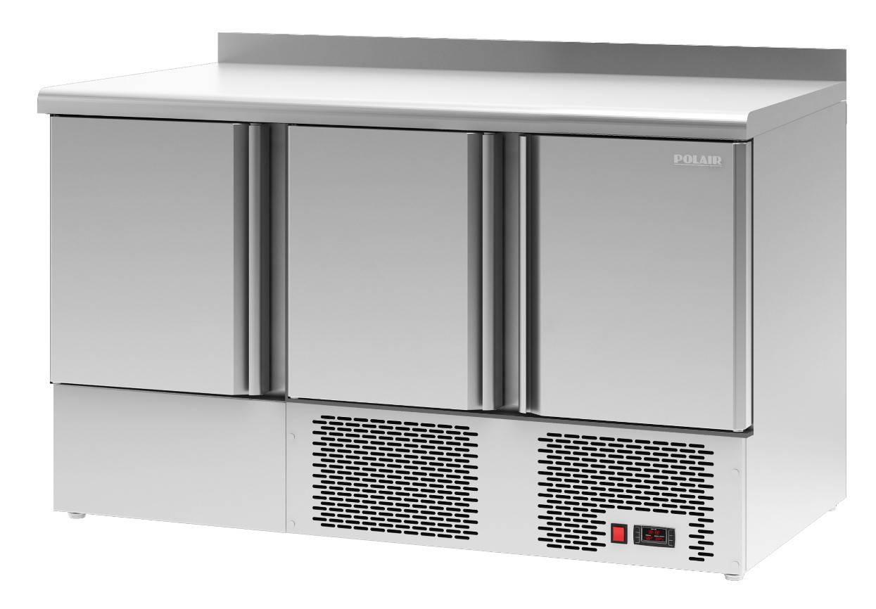 Холодильный стол Polair TMi3GN-Gявляется гастронормированным и подходит для загрузки продукции в противнях и емкостях размером GN 1/1. Материал внутрених и наружных обшивок корпуса — пищевая нержавеющая сталь — обеспечивает высокую прочность и долговечность изделия, особенно при эксплуатации в условиях пищевого производства. Спереди внизу находится электронный контроллер, с помощью которого вы сможете легко выставить необходимую температуру охлаждения, которая затем будет поддерживаться автоматически.