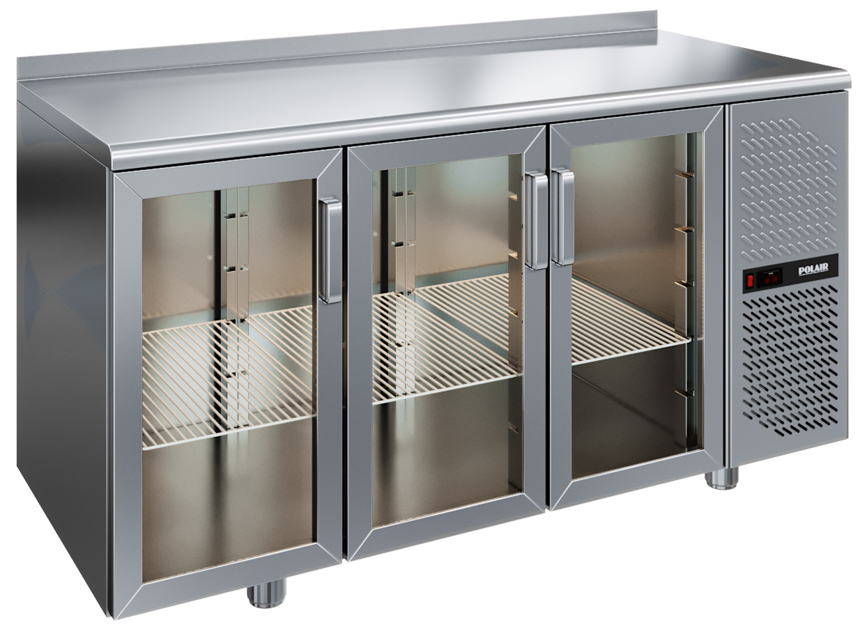 Холодильный стол Polair TD3GN-G— один из вариантов исполнения классической модели TM3GN-G, у которой вместо глухих дверок установлены дверки со стеклопакетами. Данное решение обеспечивает видимость продукции снаружи, что расширяет сферу использования стола — не только в качестве рабочего места повара на профессиональной кухне, но и в качестве компактной витрины для демонстрации и продажи напитков, салатов, десертов в барах, ресторанах, кондитерских лавках и т.д. Привлекательный внешний вид и материал корпуса — нержавеющая сталь, которая всегда выглядит презентабельно — украсят интерьер заведения.