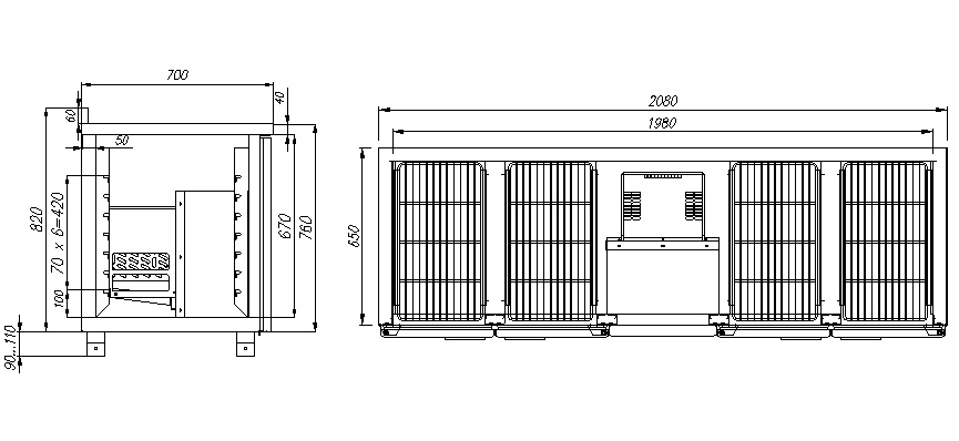 Холодильный стол T70 Carboma INOX ONE SIDE с боковым отсеком для холодильного/морозильного агрегата. Исполнение: INOX.