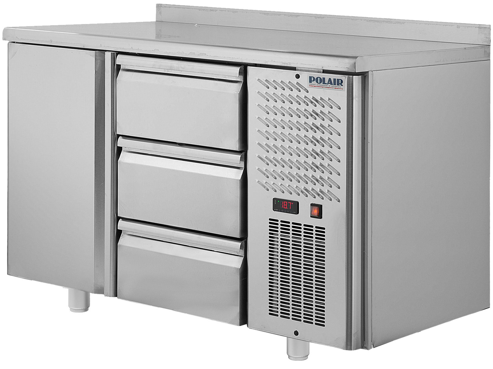 Холодильный стол Polair TM2-03-Gсделает более удобной работу с полуфабрикатами и ингредиентами блюд, требующих кратковременного хранения в охлажденном состоянии, на профессиональной кухне. Данная модификация представляет собой модель с одной глухой распашной дверкой и тремя ящиками, которые полностью выкатываются на телескопических направляющих. Как и другие модели серии Grande, эта модель имеет корпус и столешницу из нержавеющей стали, что делает максимально удобной ее эксплуатацию в условиях пищевого произвоства. Столешница подходит для использования в качестве профессионального производственного стола.