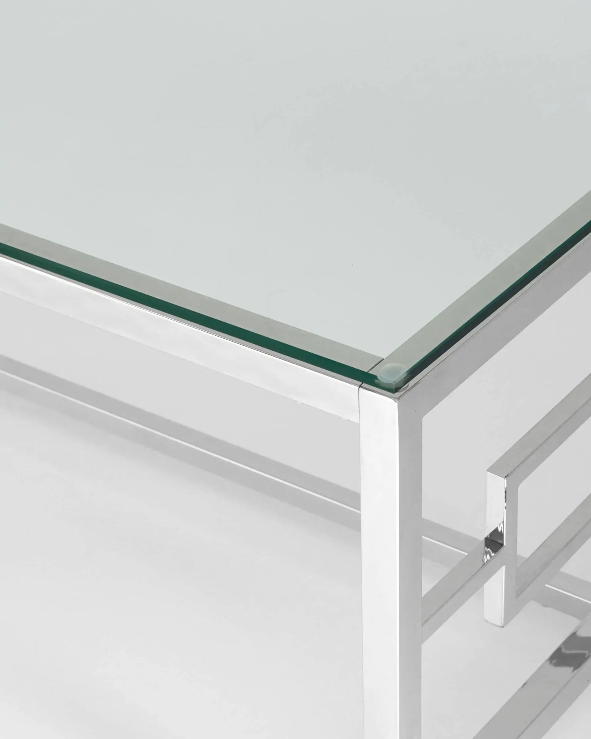 Столешница выполнена из прозрачного закаленного стекла, которое обладает повышенной прочностью и стойкостью к перепадам температур, способно выдерживать большие нагрузки.