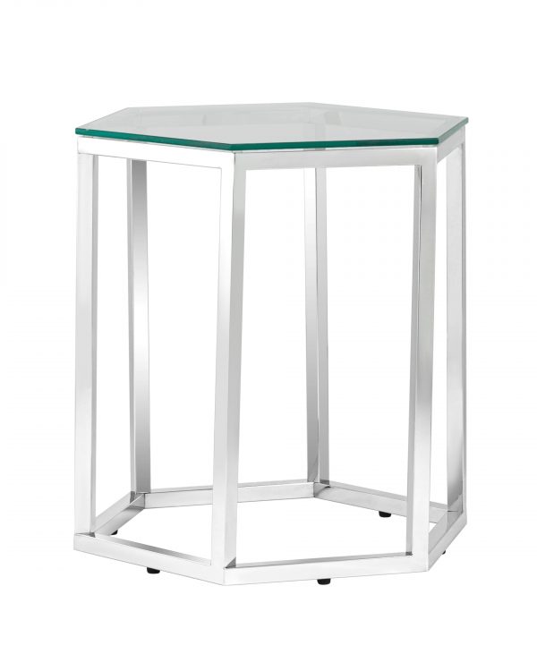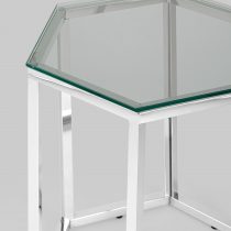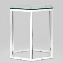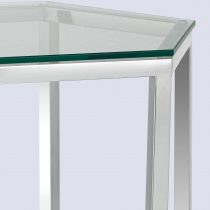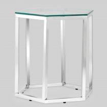Журнальный стол ГЕКС благодаря оригинальной форме станет ярким дизайнерским акцентом в интерьере. Каркас стола изготовлен из нержавеющей стали, столешница – закаленное стекло.