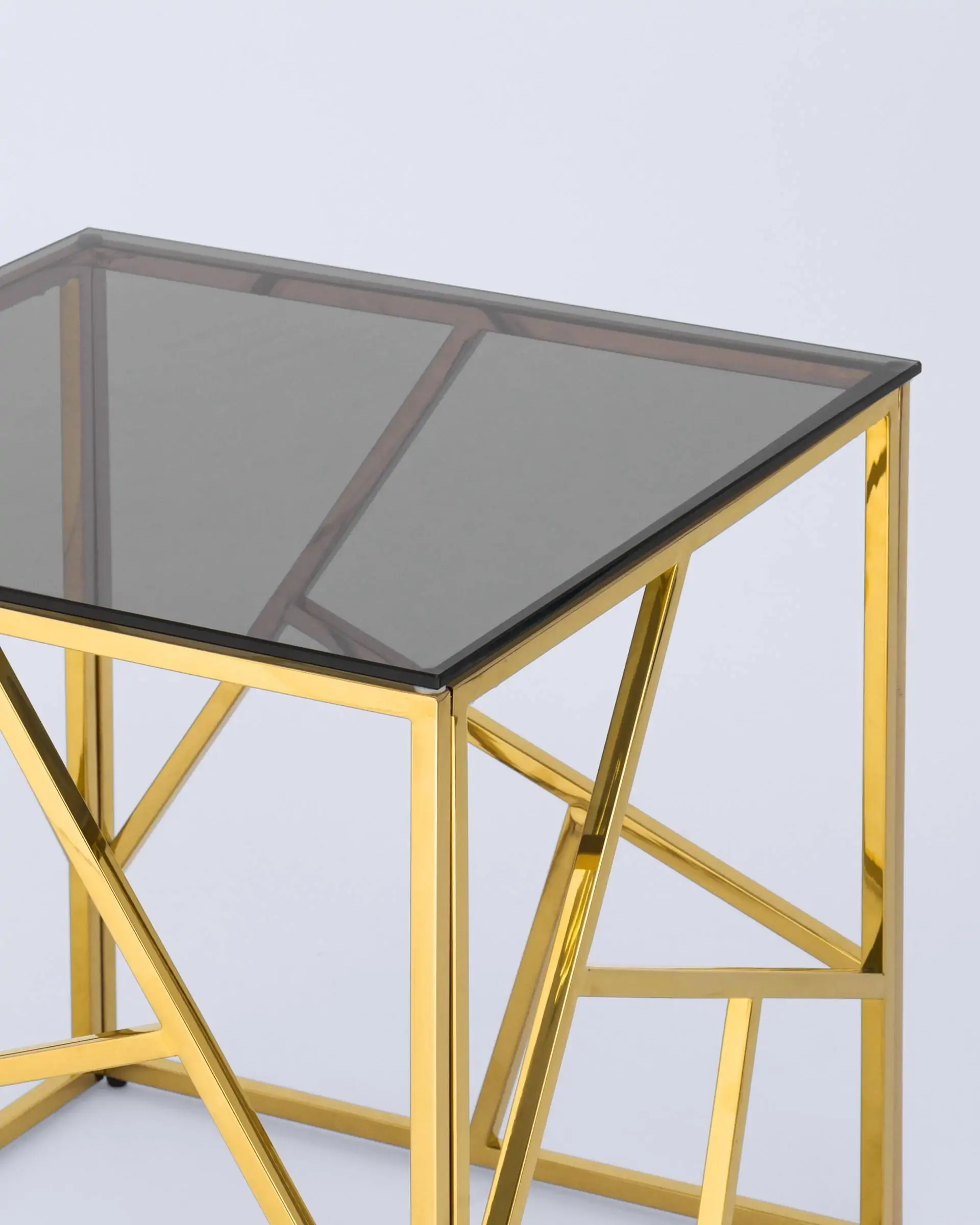 Столешница выполнена из дымчатого закаленного стекла, которое обладает повышенной прочностью и стойкостью к перепадам температур, способно выдерживать большие нагрузки.