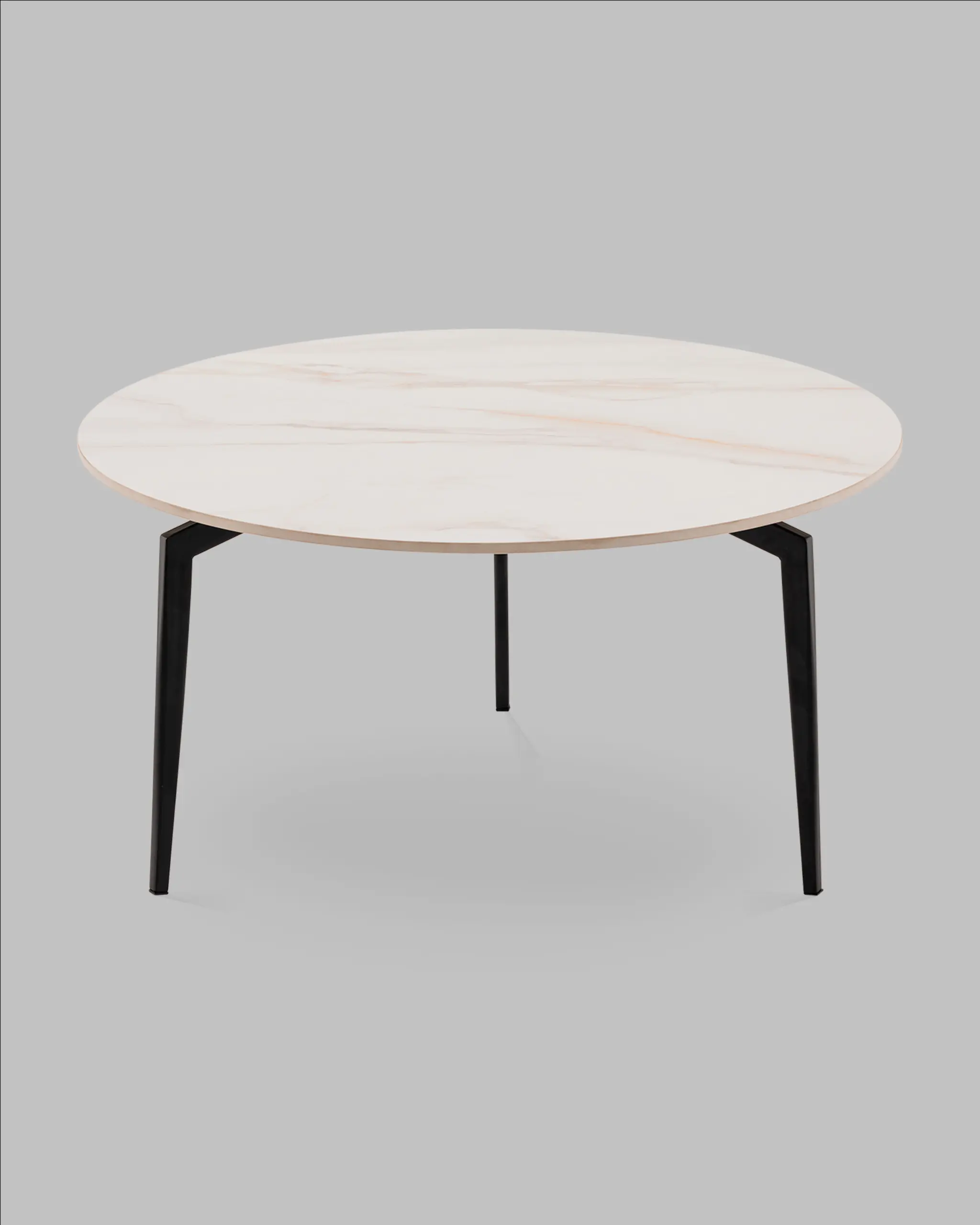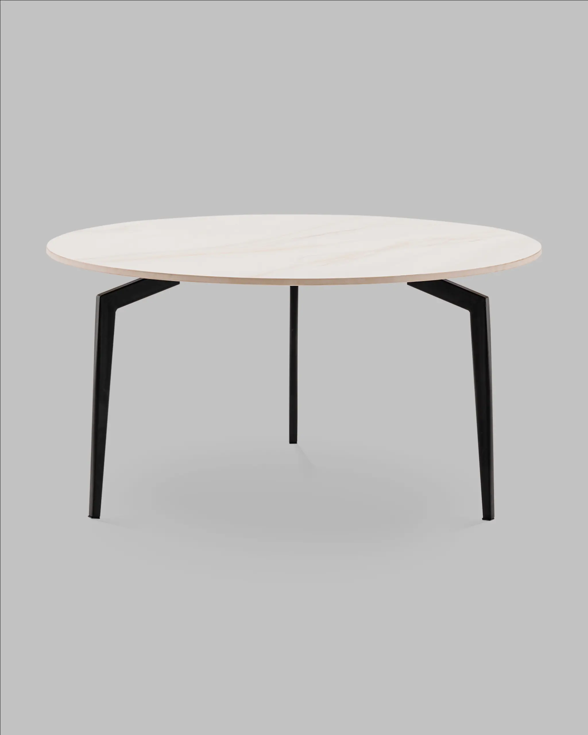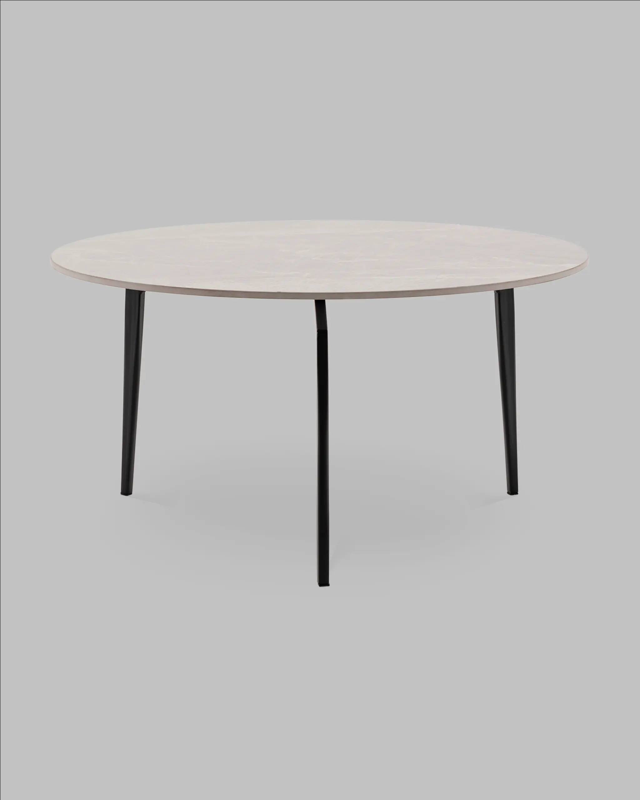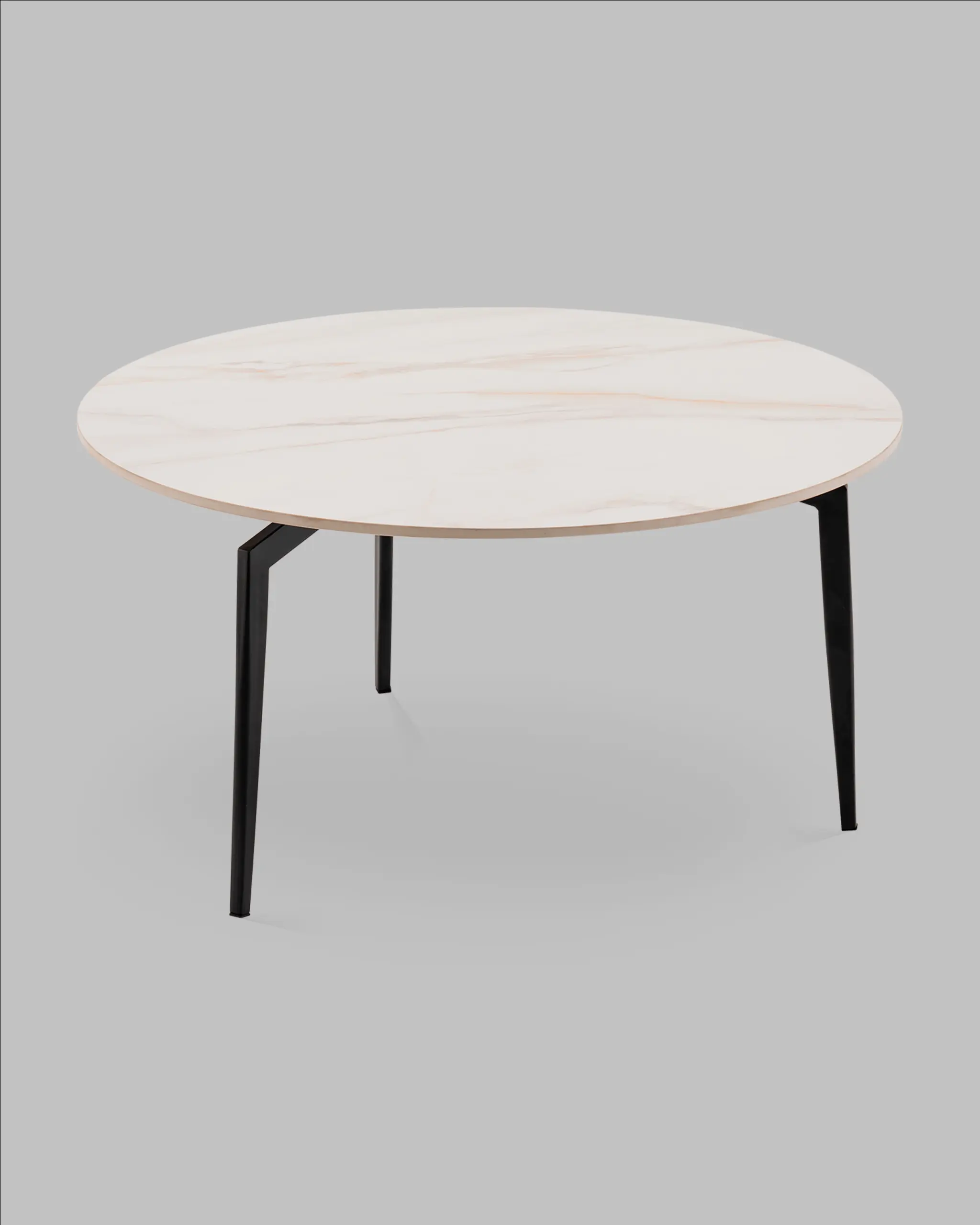 Столешница выполнена из керамикив благородном сером оттенке с имитацией мраморной текстуры. Это не только визуально привлекательное решение, но и практичное: керамика устойчива к царапинам, высокой температуре и легко очищается.Ножки из металлаобеспечивают надёжность и долгий срок службы изделия.