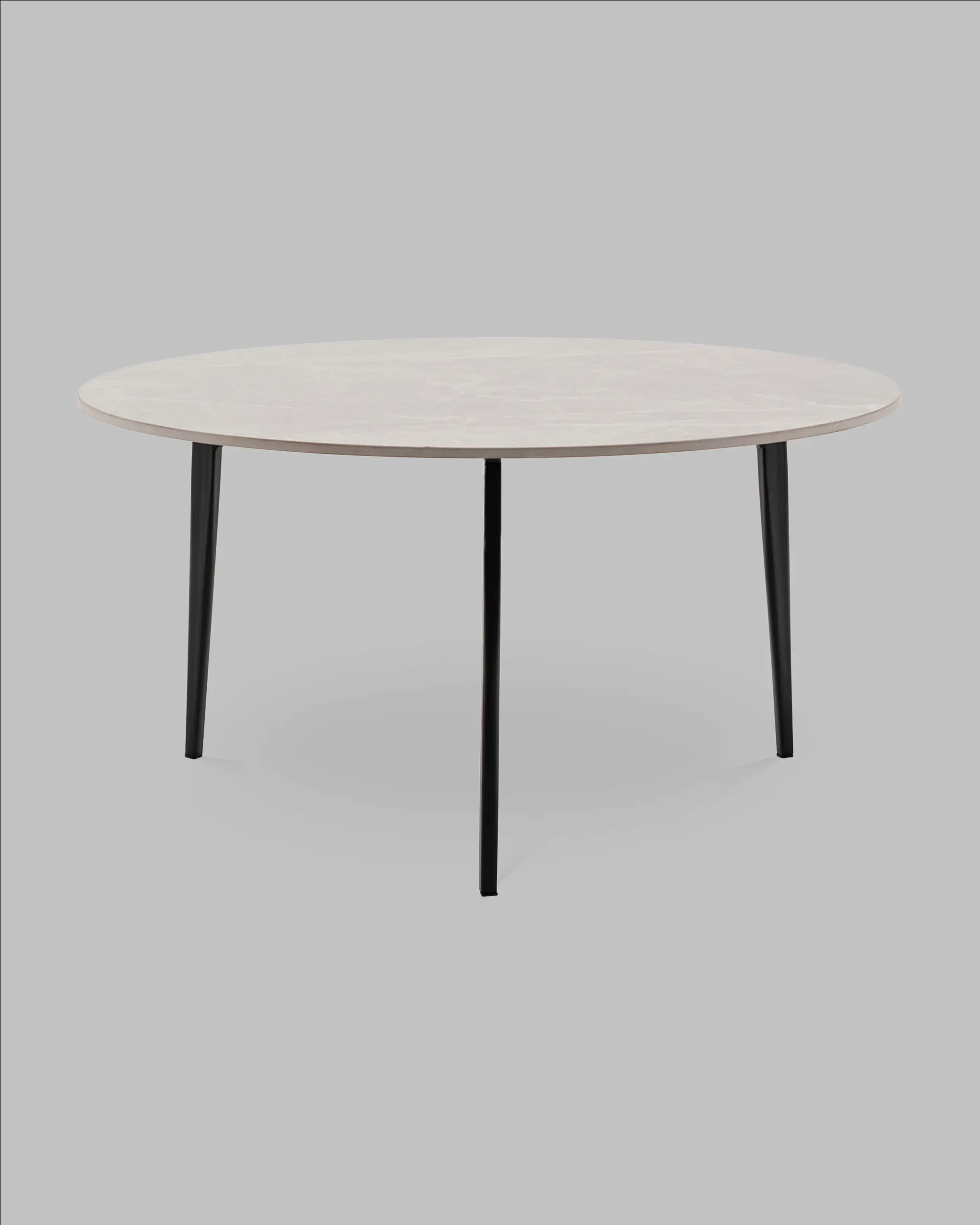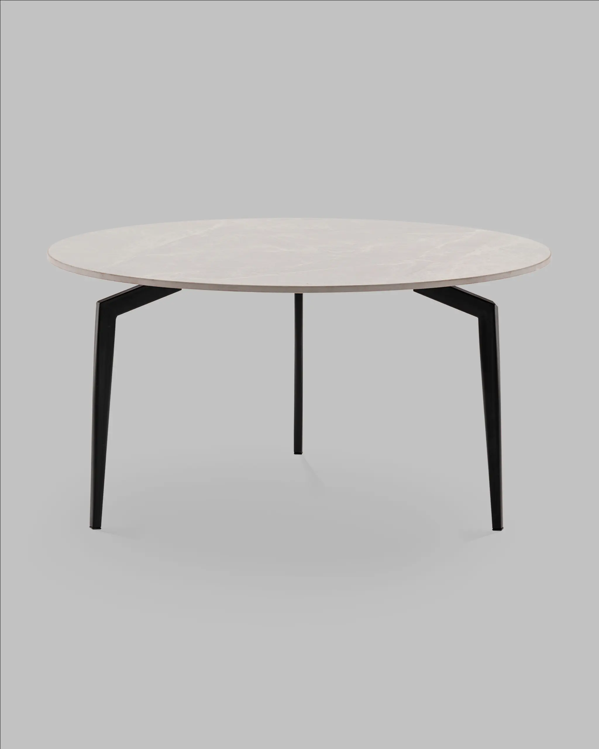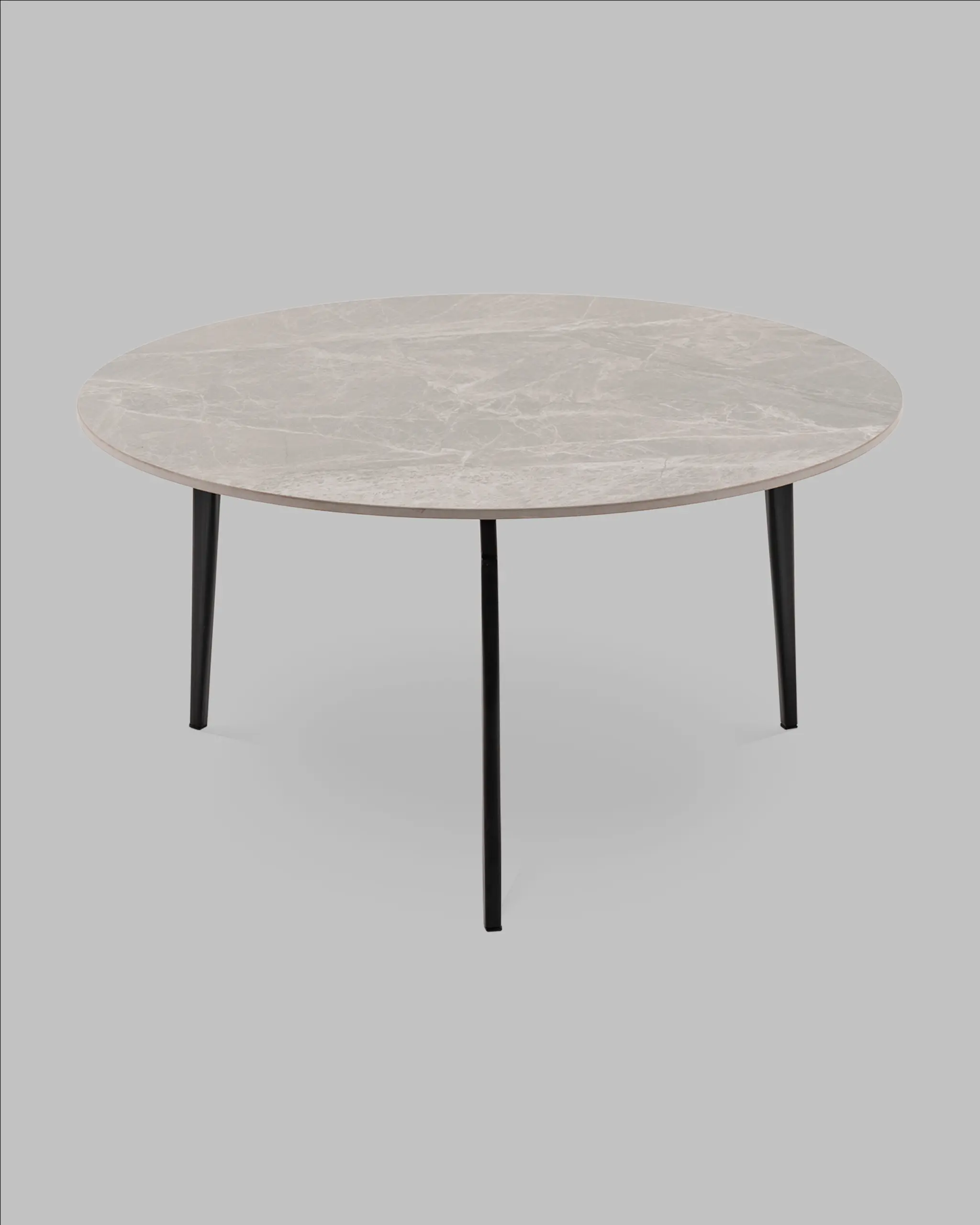 Столешница выполнена из керамикив благородном сером оттенке с имитацией мраморной текстуры. Это не только визуально привлекательное решение, но и практичное: керамика устойчива к царапинам, высокой температуре и легко очищается.Ножки из металлаобеспечивают надёжность и долгий срок службы изделия.
