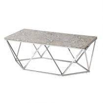 Журнальный столик Авалон 122*66 серый мрамор сталь серебро