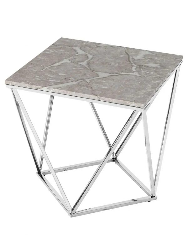 Журнальный столик Авалон 61*61 серый мрамор сталь серебро