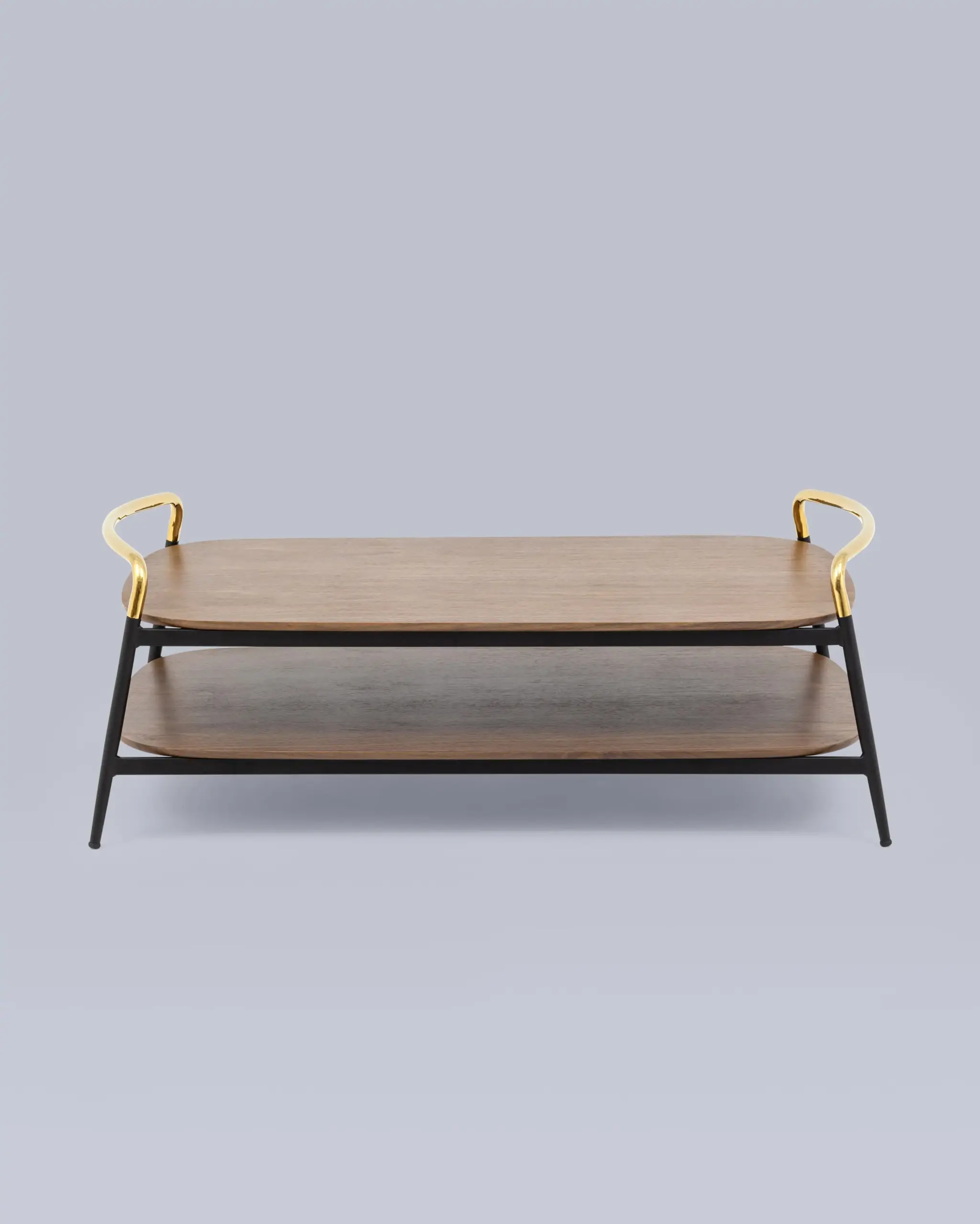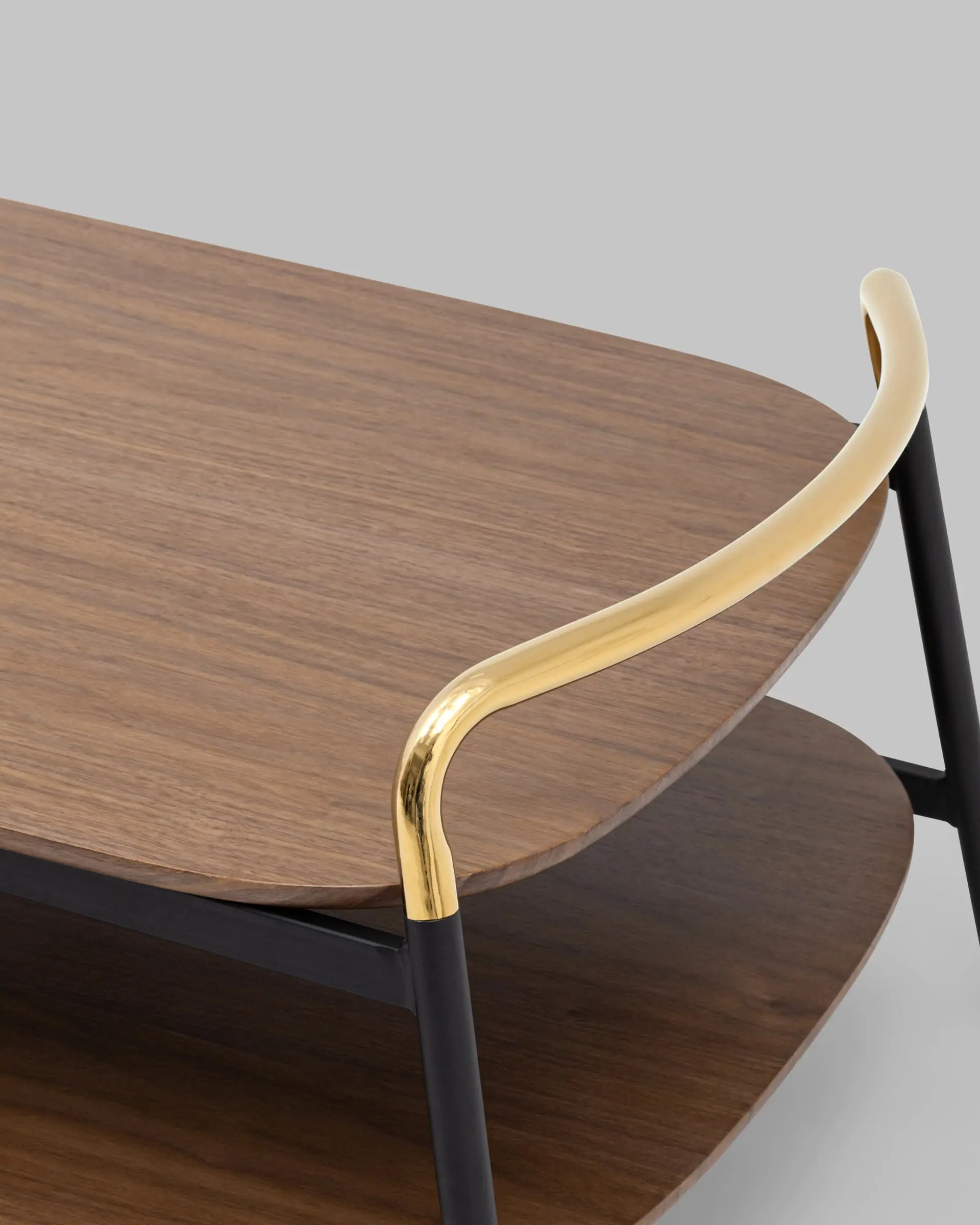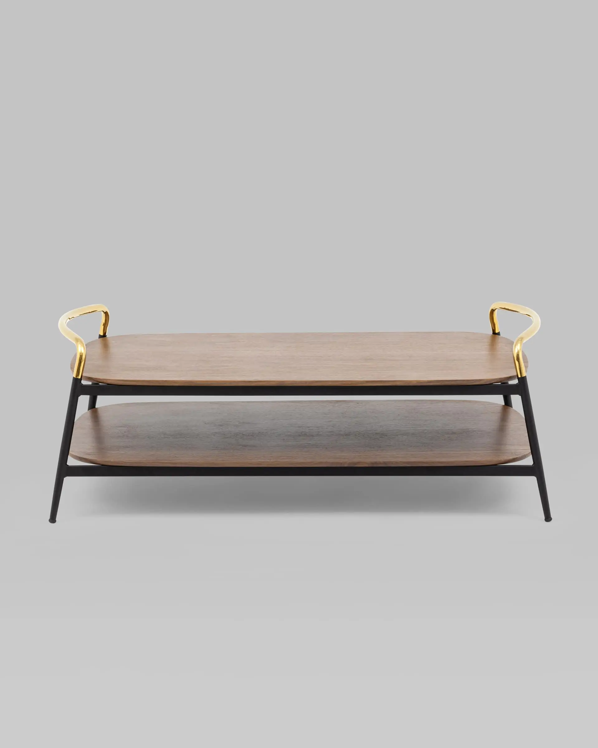 Стильный журнальный стол Нолан прекрасно дополнит интерьер гостиной. Прямоугольная столешница с закругленными углами выполнена из МДФ и покрыта шпоном в оттенке темного дерева. Под столешницей предусмотрена полка для хранения различных мелочей или журналов. Металлический каркас в черном цвете и золотые ручки гармонично сочетаются со столешницей. В основании ножек предусмотрены специальные подпятники, которые предотвращают скольжение и повреждение напольного покрытия.