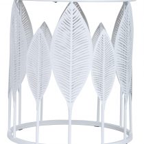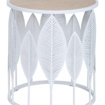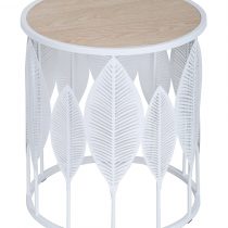 Круглый журнальный столик с белым каркасом. Столешница выполнена из МДФ и покрыта шпоном светлого дерева, гармонично сочетается с природными мотивами основания столика. Металлический каркас белого цвета выдерживает нагрузку до 50 кг. Журнальный столик поможет дополнить интерьер в эко-стиле и добавить уюта.