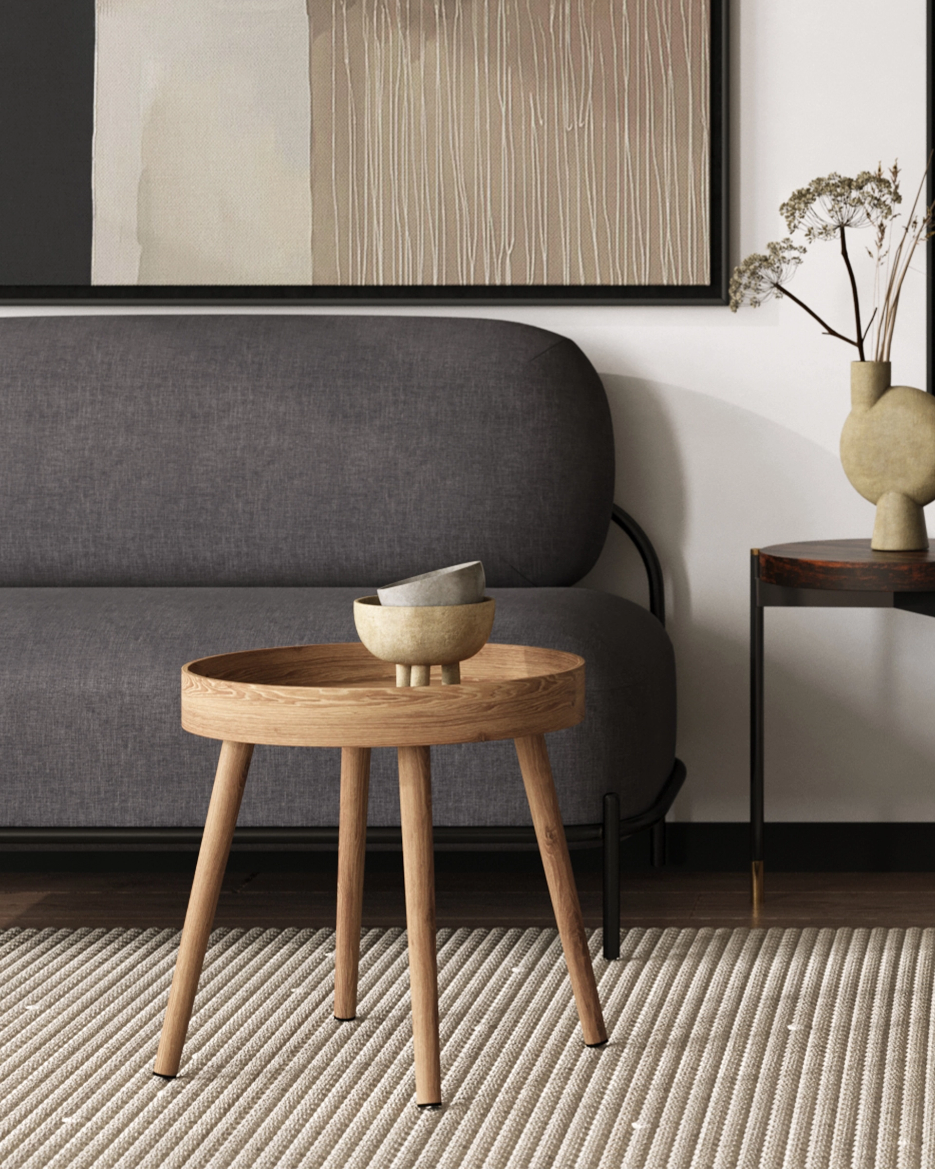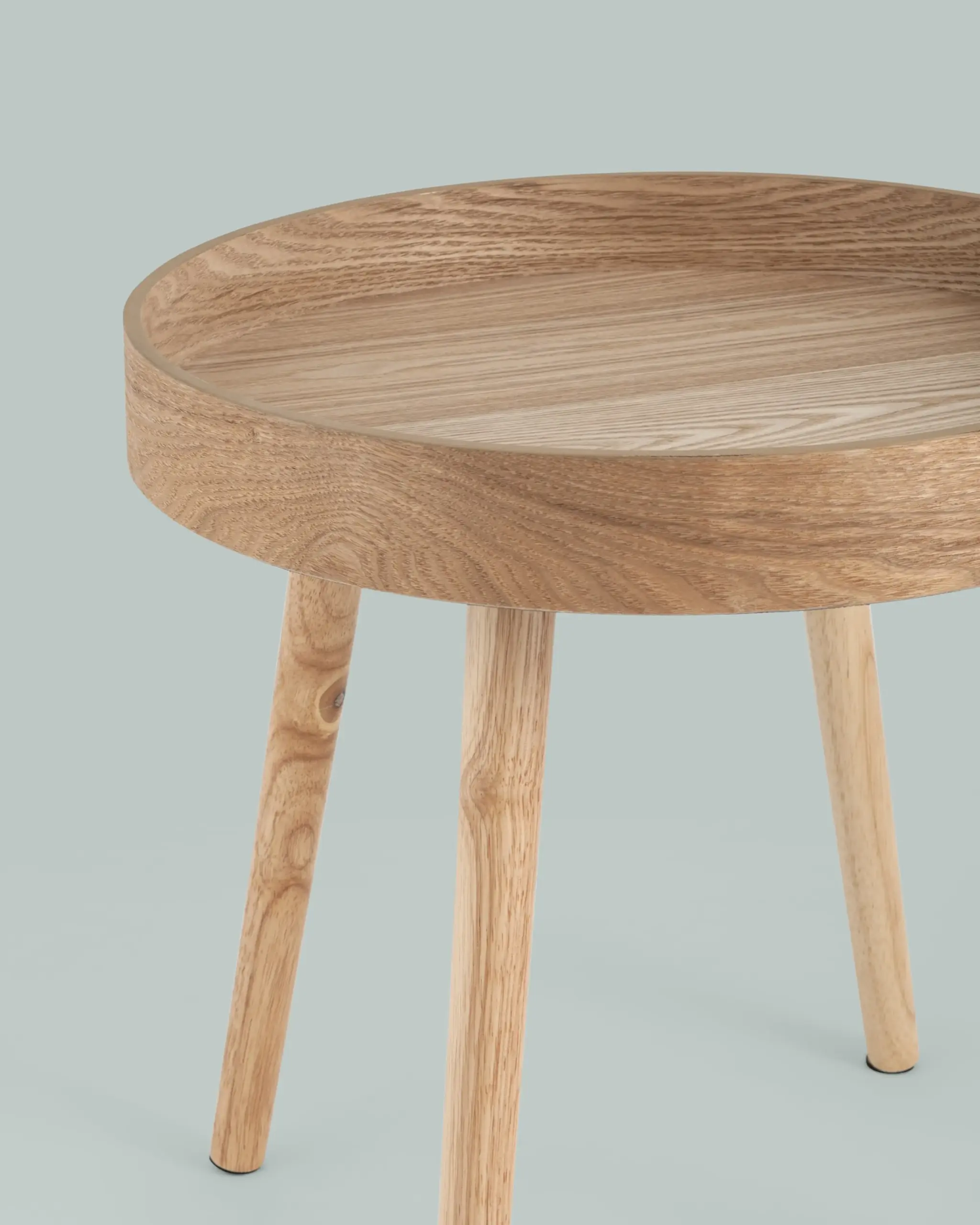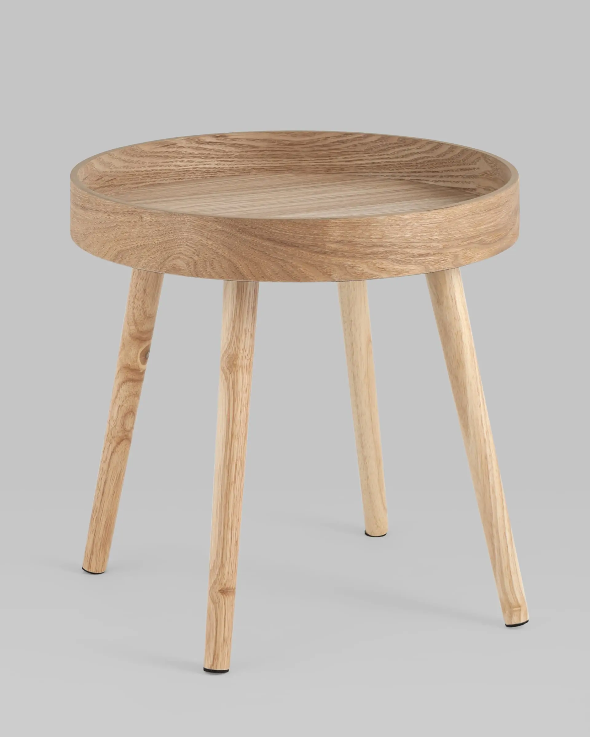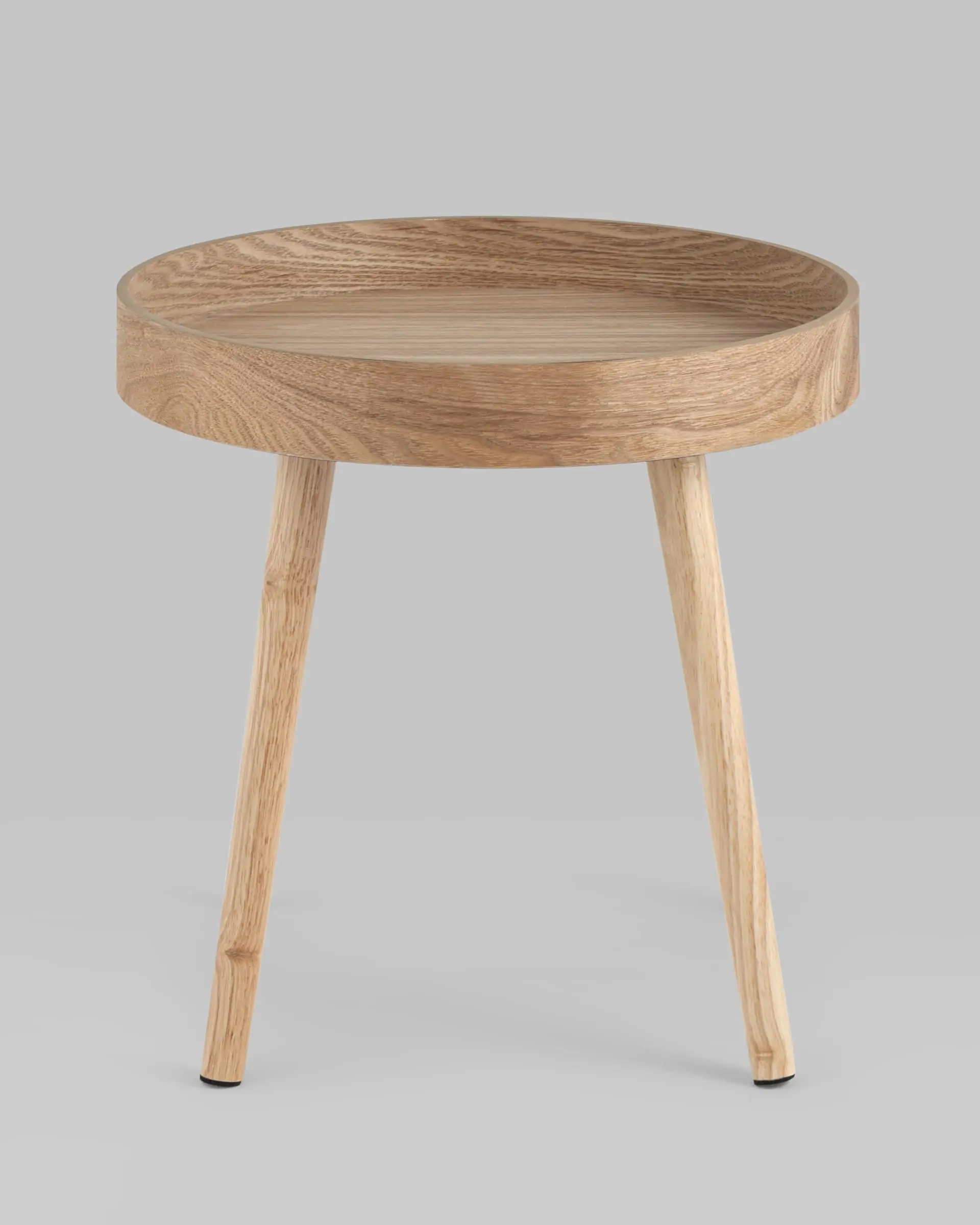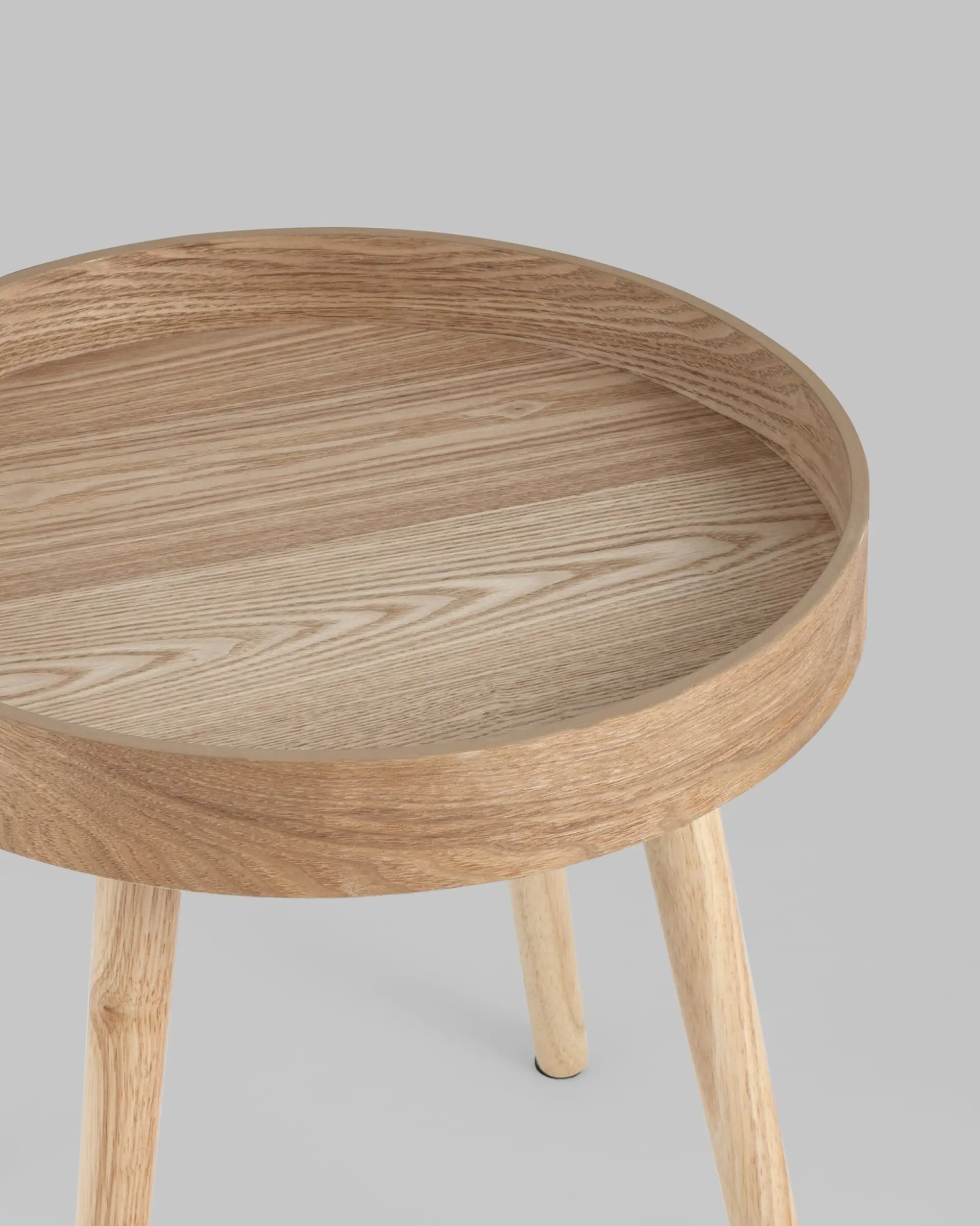 Круглый журнальный столик в скандинавском стиле. Столешница выполнена из МДФ с бортами по краям для удобства и покрыта шпоном из светлого ясеня. Ножки из массива дерева гармонично сочетаются со столешницей и выдерживают нагрузку до 50 кг. Столик идеально впишется в интерьер в светлых тонах и дополнит природными мотивами.