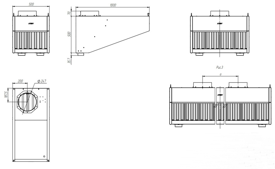 Зонт вытяжной Atesy второго поколения серии “стандарт-2” (козырьковый тип) из нержавеющей стали AISI430. Все кромки зонтов имеют подгиб, что полностью исключает получение травмы персоналом при эксплуатации и санитарной обработке изделий.