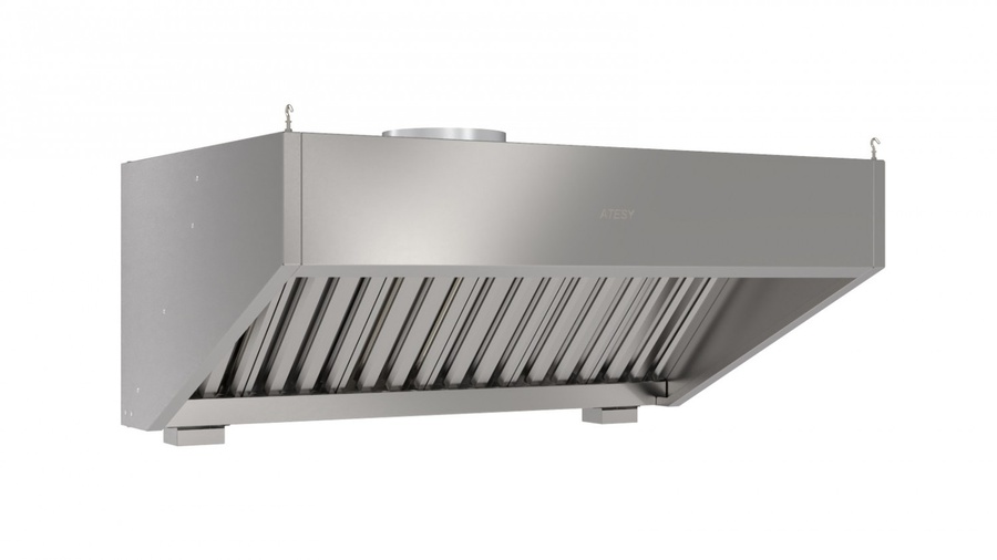 Зонт вытяжной Atesy второго поколения серии “стандарт-2” (козырьковый тип) из нержавеющей стали AISI430. Все кромки зонтов имеют подгиб, что полностью исключает получение травмы персоналом при эксплуатации и санитарной обработке изделий.