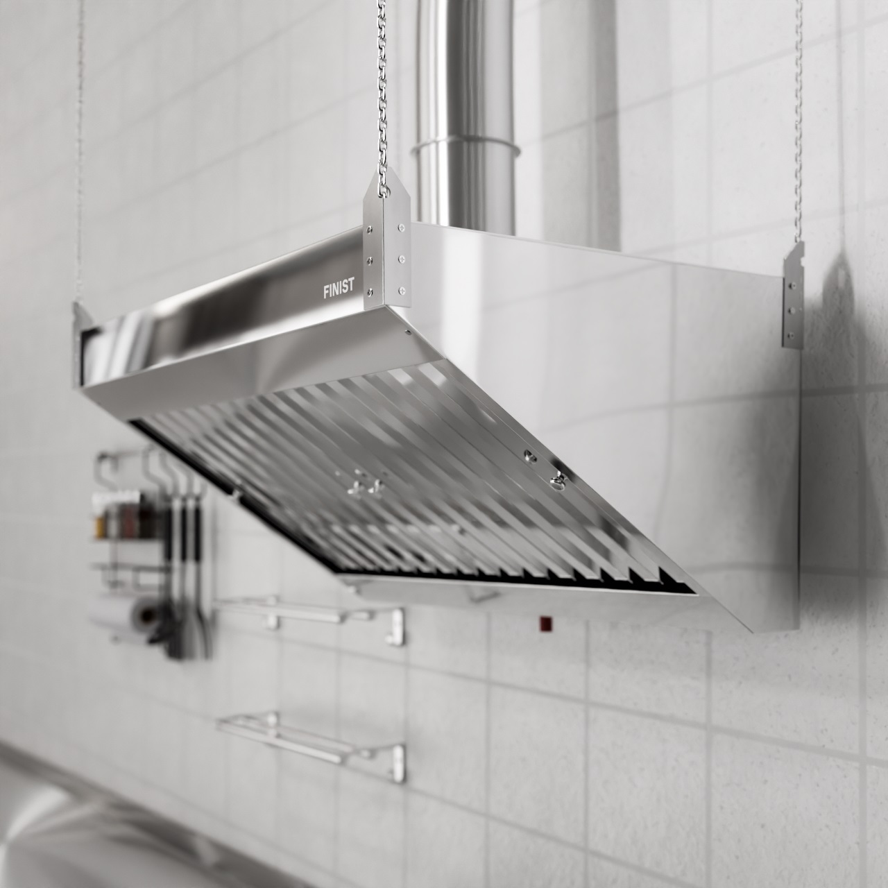 Подходит для установки над оборудованием у стены с небольшой рабочей поверхностью, что не требует большой площади захвата. Например, моечные ванны, зона приготовления пищи, блинницы, грили, посудомоечные машины.