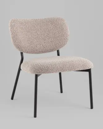 Кресло лаунж Бостон велюр рельефный молочный на черных ножках